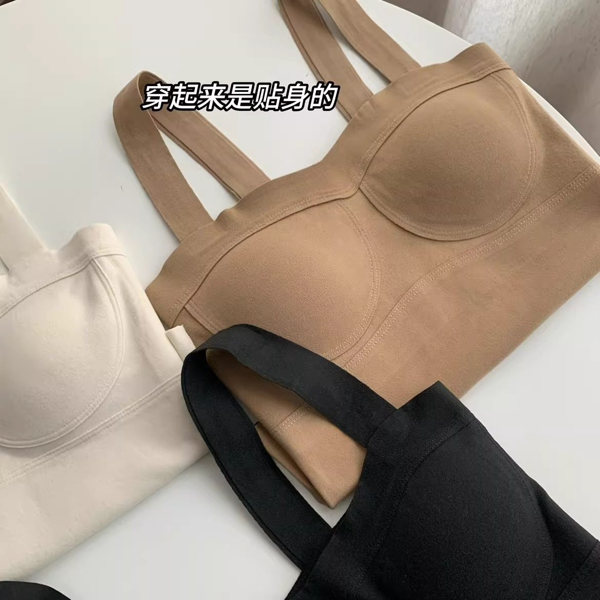 磨毛保暖背心女2025冬新款带胸垫一体无痕吊带打底内衣加绒加厚