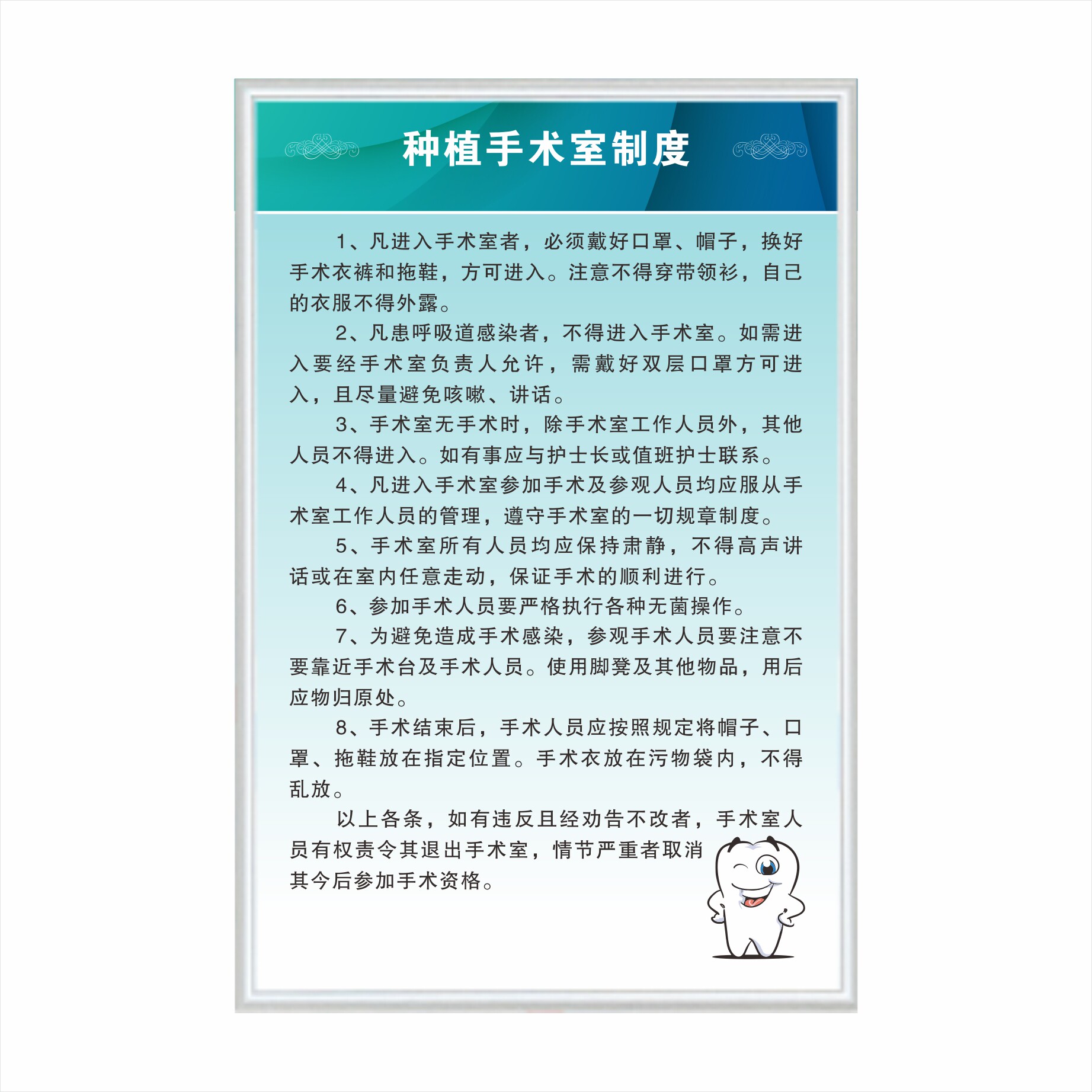 口腔门诊种植室工作制度种植中心手术室器械消毒隔离管理制度墙贴