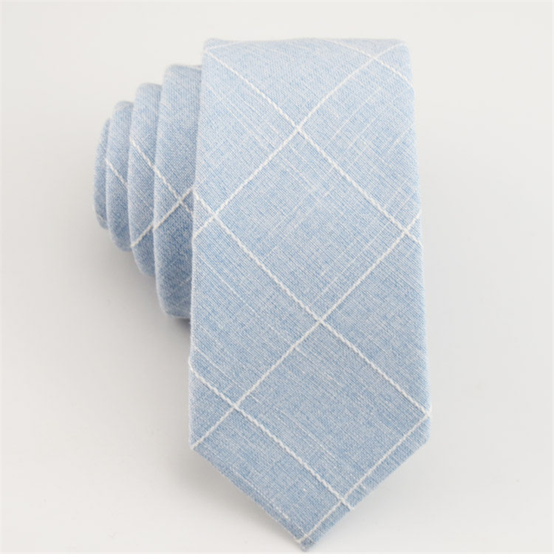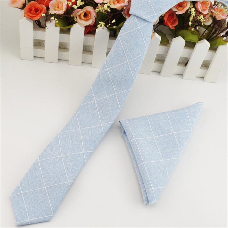 浅蓝色领带男 白格子手打 韩版窄领带配套方巾领结浅色口袋巾正装