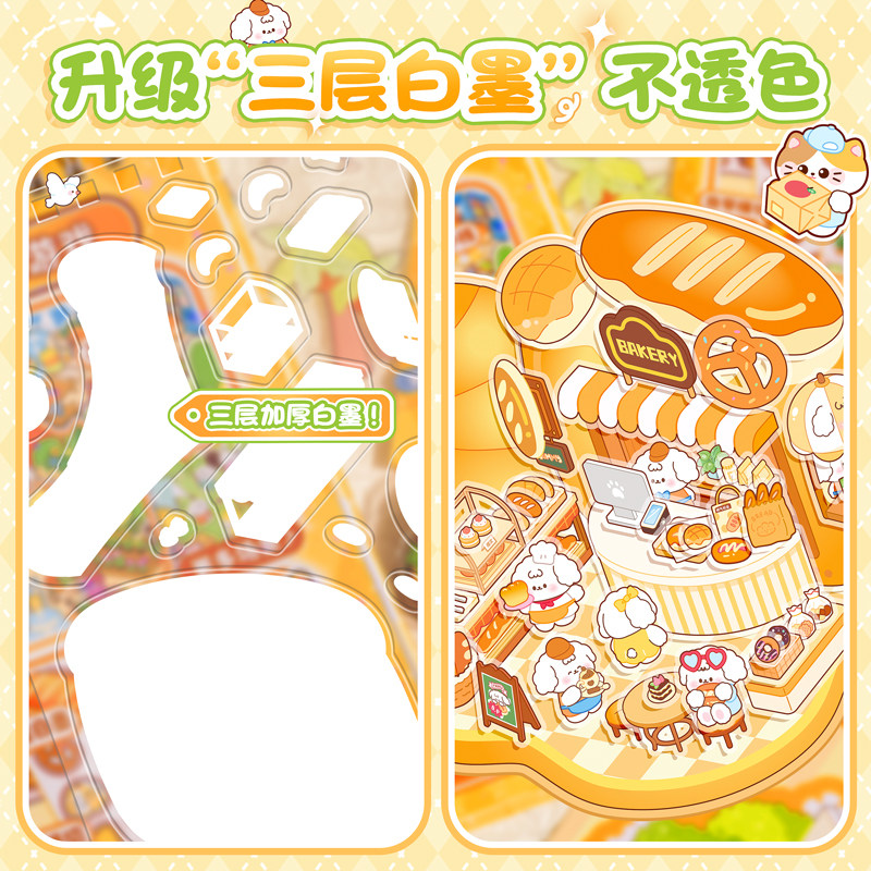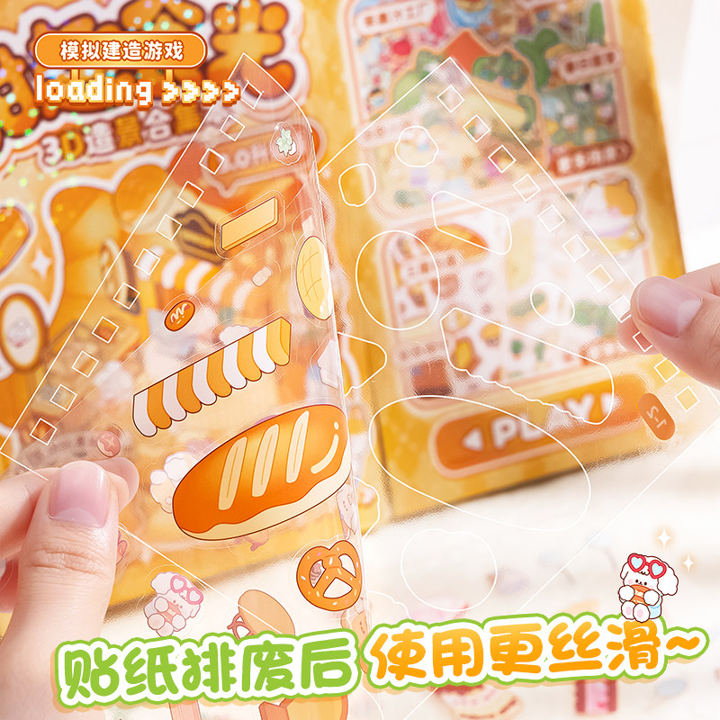 新款筑梦3d立体造景贴纸微缩场景合集本 大号版diy手工小屋手账贴儿童益智玩具素材贴画解压大版3D手账装饰贴
