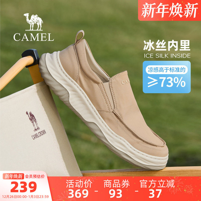 骆驼男鞋2025夏季新款冰丝凉感潮流男鞋子轻便透气一脚蹬休闲布鞋