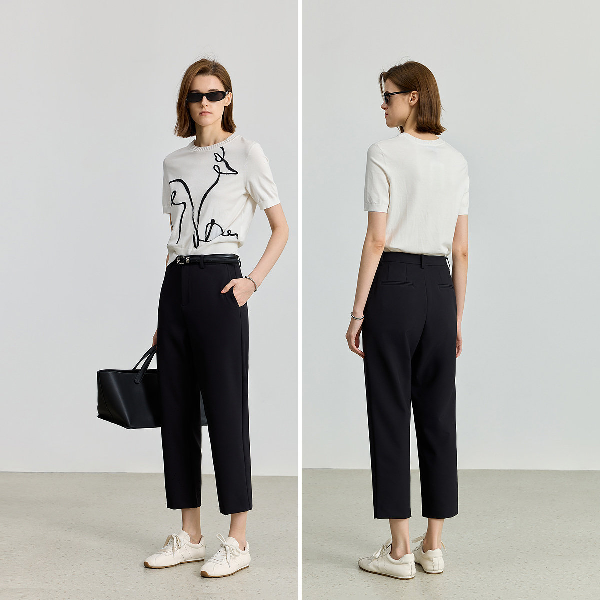 【商场同款】LILY2025新款极简风弹力小脚直筒裤休闲裤小黑裤女