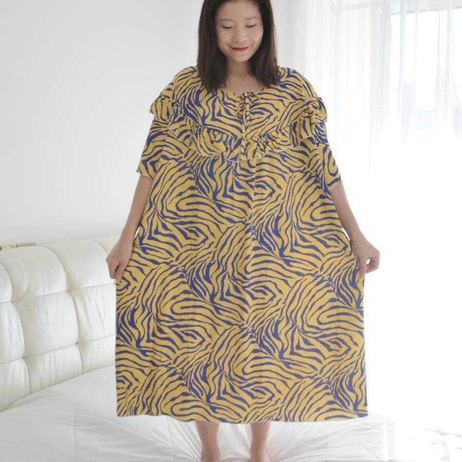 夏季睡裙女孩短袖大码睡衣200斤宽松加肥加大码夏天女薄款中长款