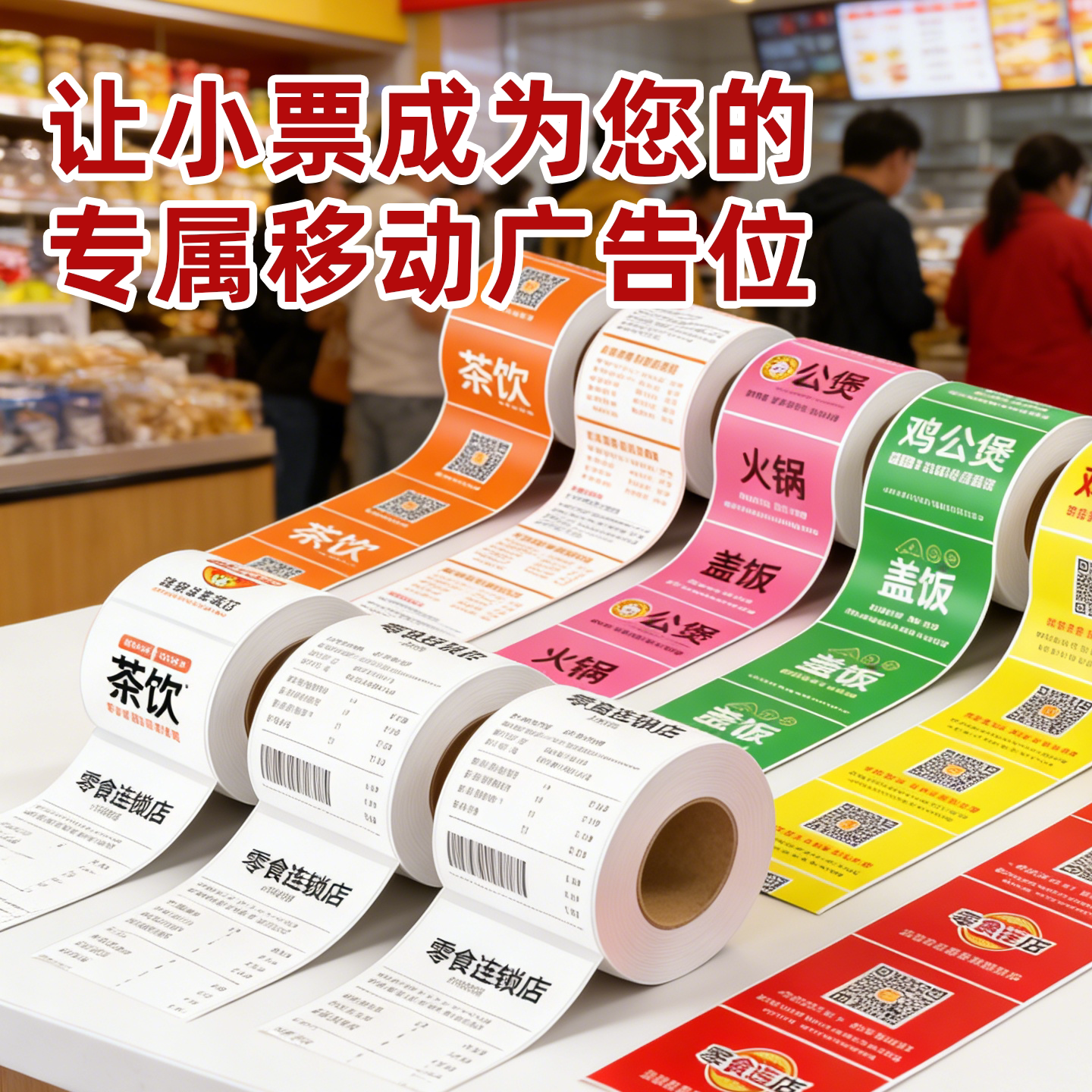定制收银纸小票纸彩色热敏纸机打收银纸电影票纸超市彩色标签纸外卖商超票据纸57×50mm80x80卷式热敏纸印刷