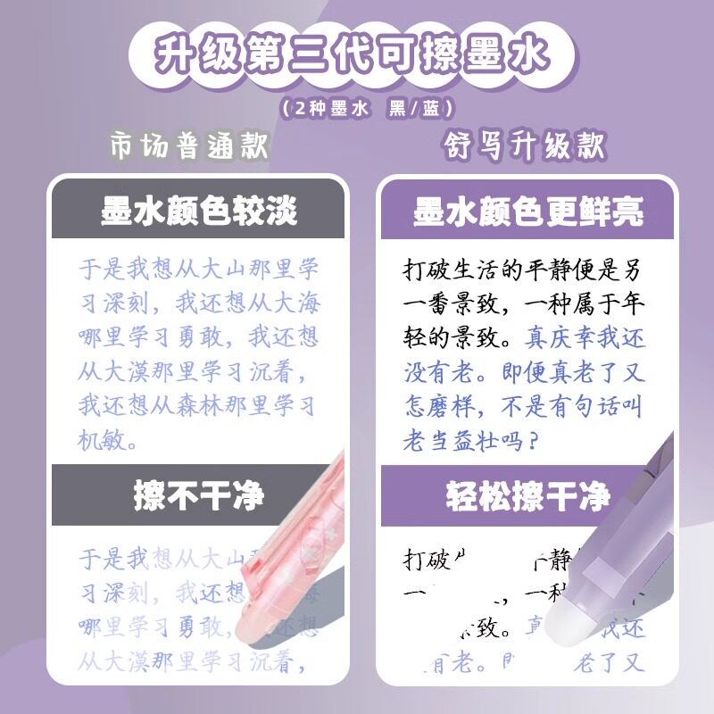 舒写库优米热可擦中性笔小学生专用软握按动可擦水笔晶蓝0.5mm