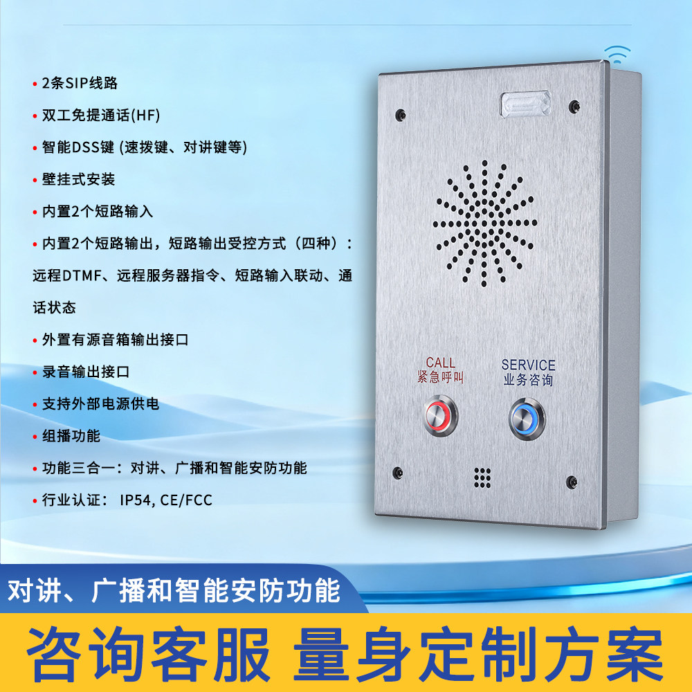 IP电话岗亭停车场ip网络双键对讲学校会议电话酒店电话sip话机双键语音呼叫一键紧急求助终端铝合金户外学校