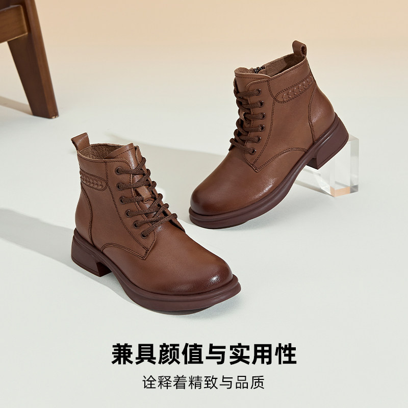 【头层牛皮】美拉德短靴英伦风马丁靴女真皮粗跟新款秋冬踝靴