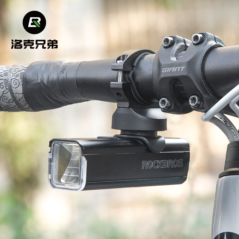 洛克兄弟自行车前灯夜骑灯强光手电筒USB充电山地公路车骑行装备