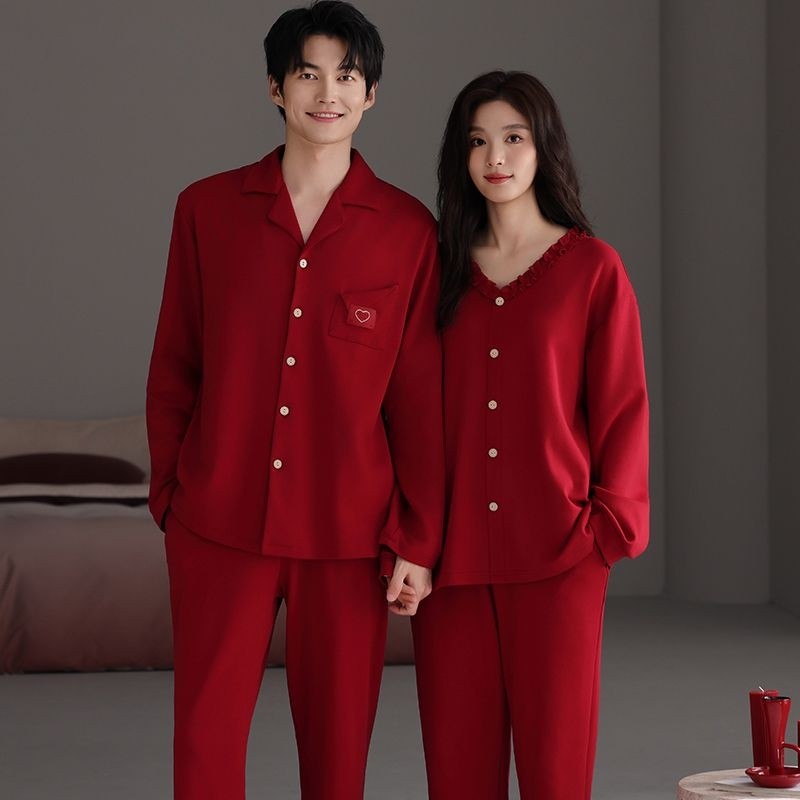 喜庆纯棉睡衣红色男女情侣款可外穿长袖本命年马年新年家居服套装