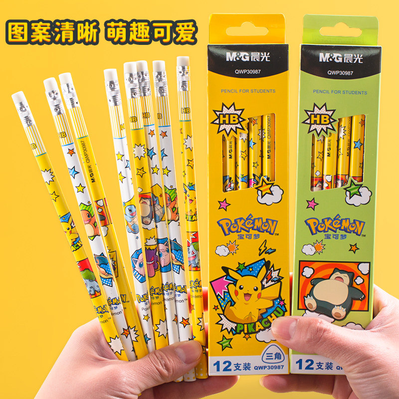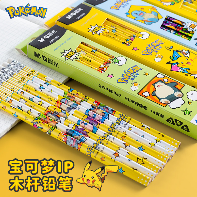 晨光宝可梦联名皮卡丘限定学生木杆铅笔hb三角型带橡皮2b高颜值男女孩一二年级小学生专用卡通可爱幼儿园写字