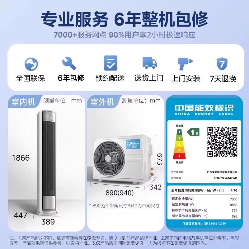 2025新款美的全面风空调官方一级立式2匹3匹家用客厅变频冷暖柜机