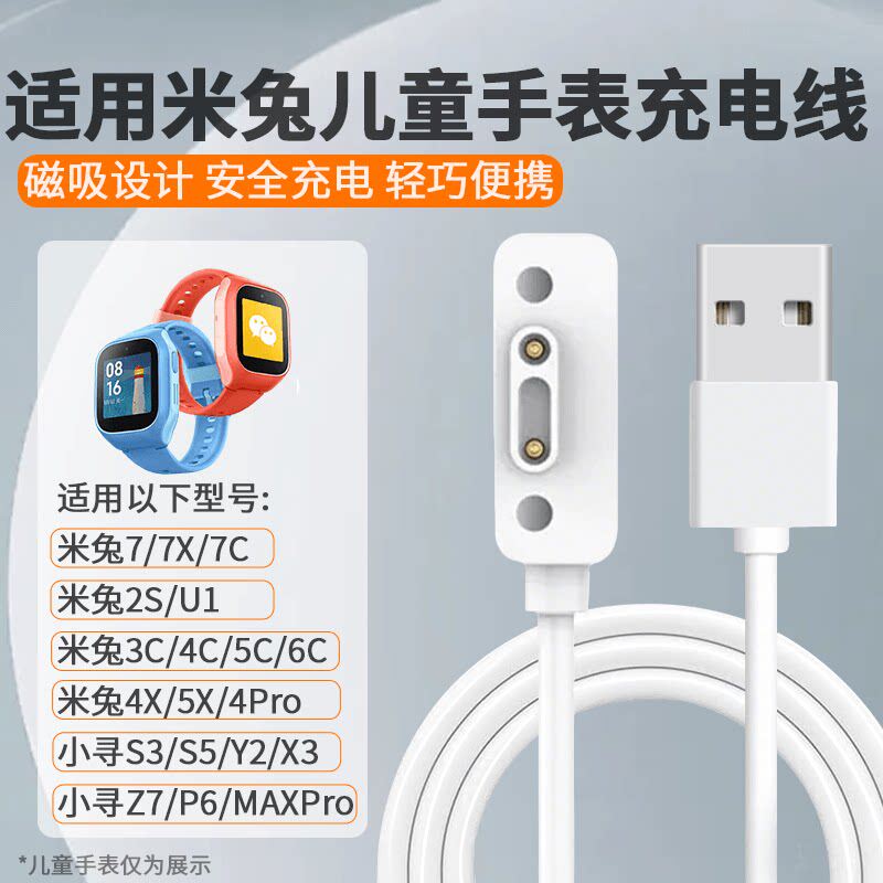 适用小米米兔儿童电话手表充电线7X/6X/5C/4C/3C/C7A Pro磁吸充电器头小寻X3/Y2/max/S3/T3/S5原数据线装正品