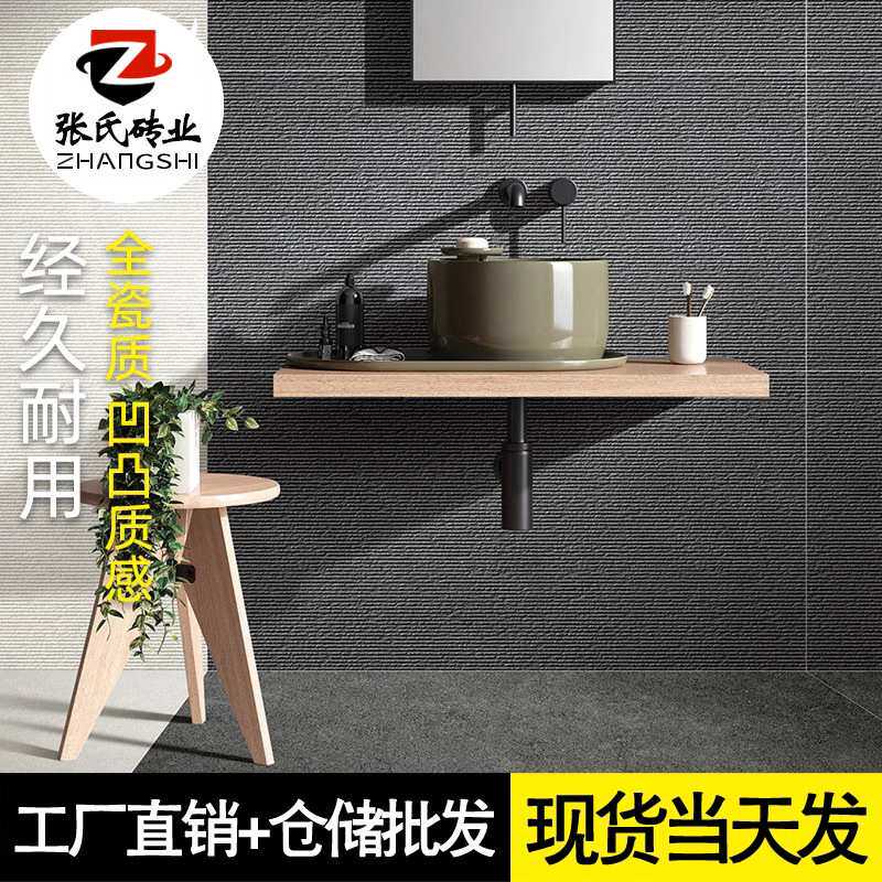 全瓷柔光素色石纹仿古砖600x1200侘寂极简客厅地砖凹凸拉槽背景墙