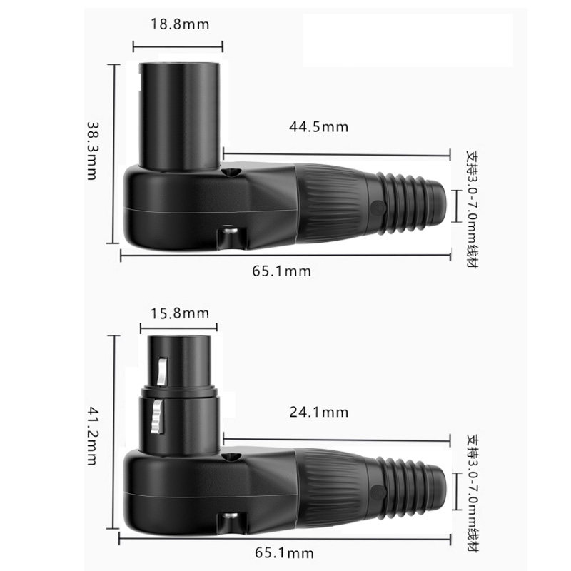 纯铜卡侬公对母音频线调音台效果器功放平衡线90度弯头直角卡农线