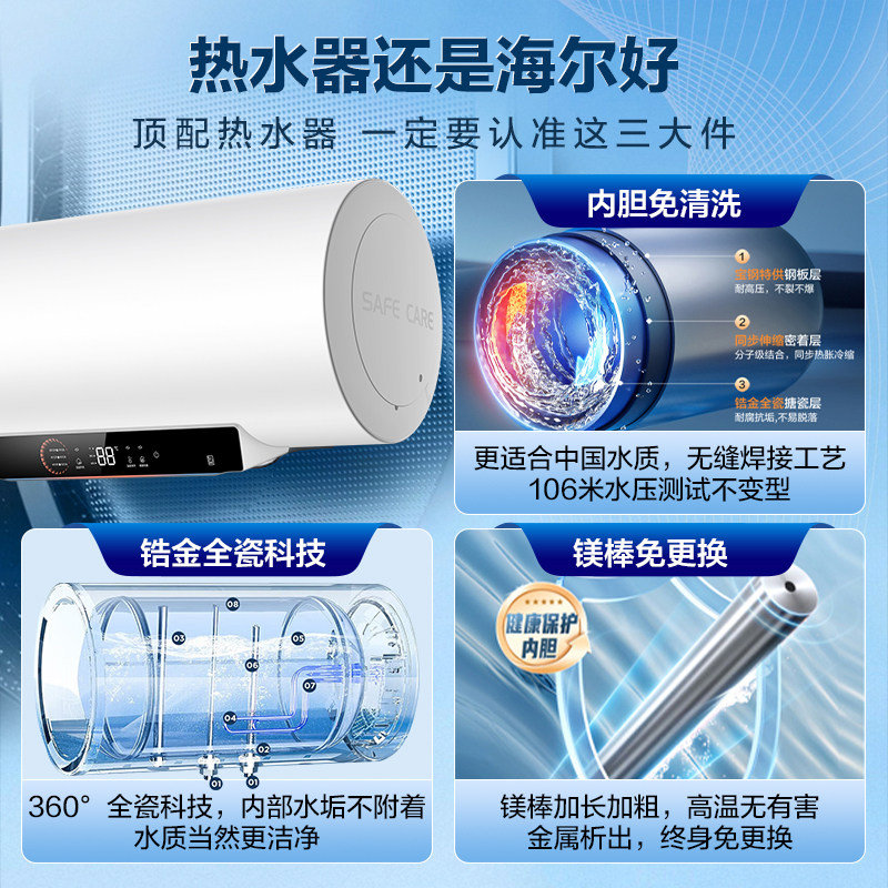 海尔电热水器家用卫生间100升大容量洗澡一级能效变频理发店GRC