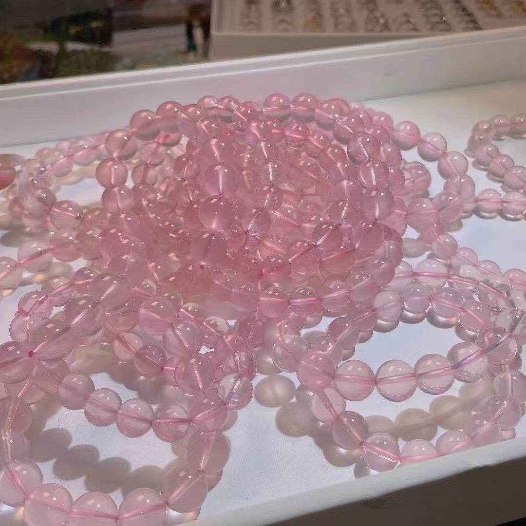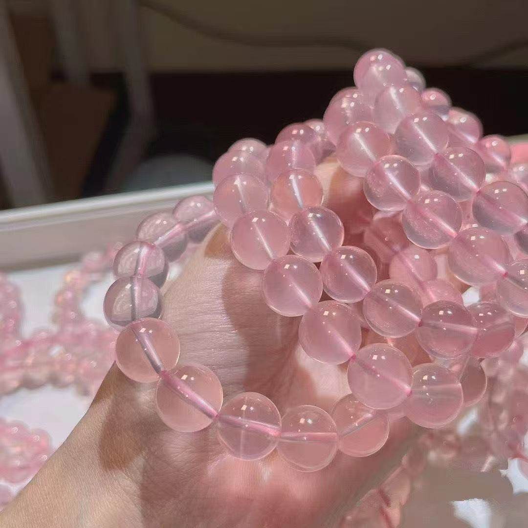 蜜桃粉莫粉手串莫桑比克星光粉晶手串粉水晶手串送女朋友收藏款
