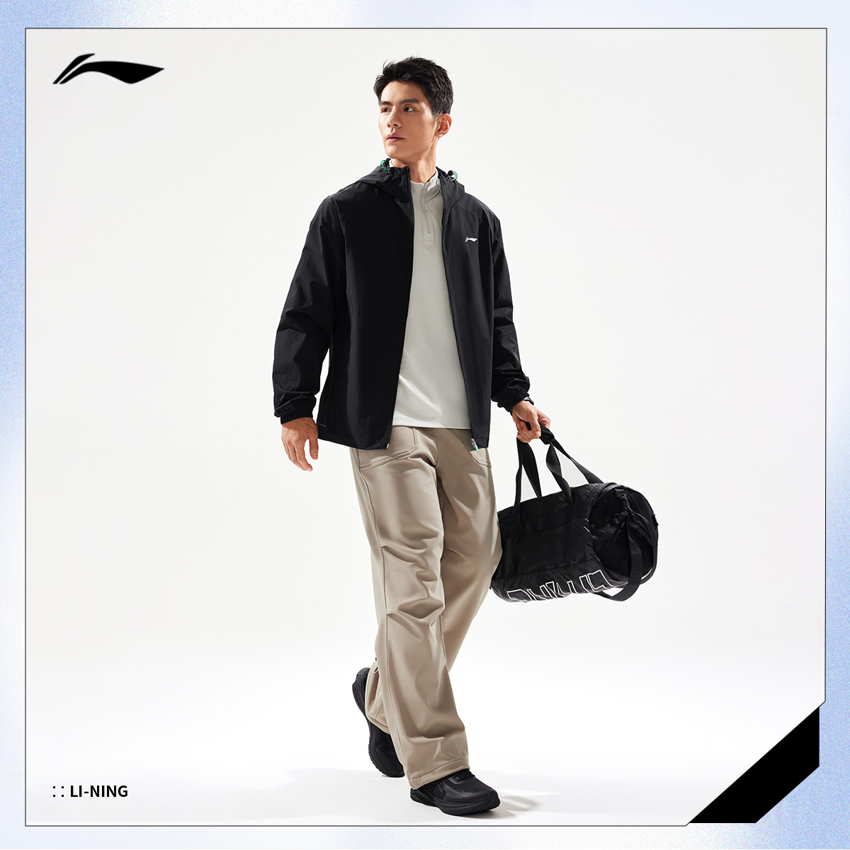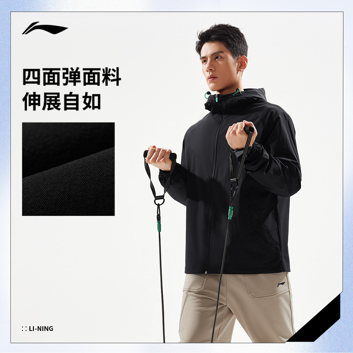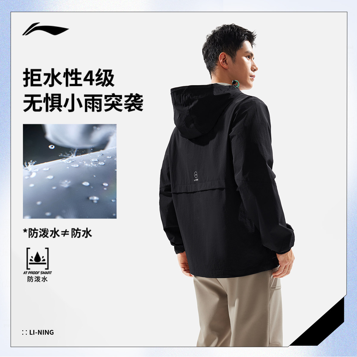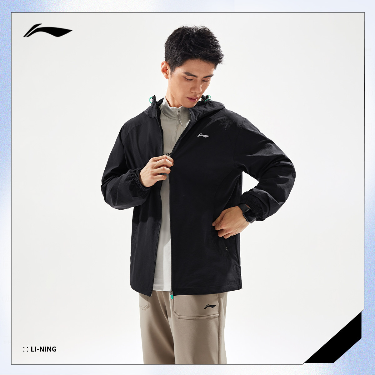李宁风衣男秋季新款跑步宽松健身夹克训练连帽开衫上衣轻运动外套