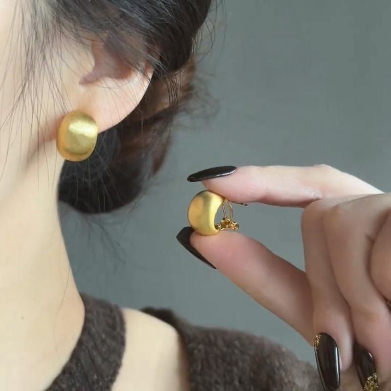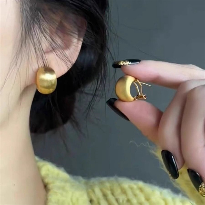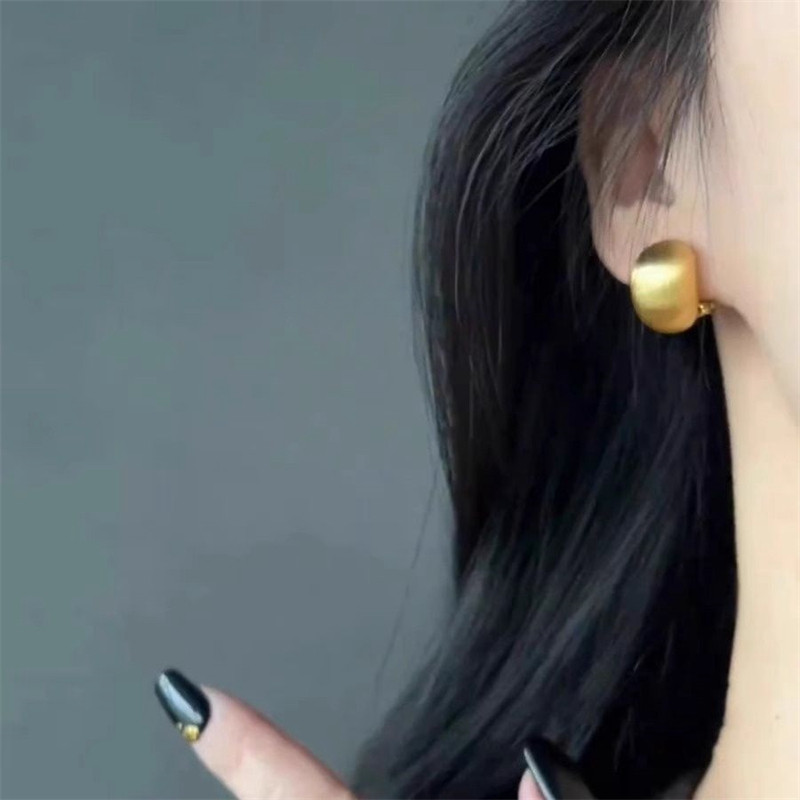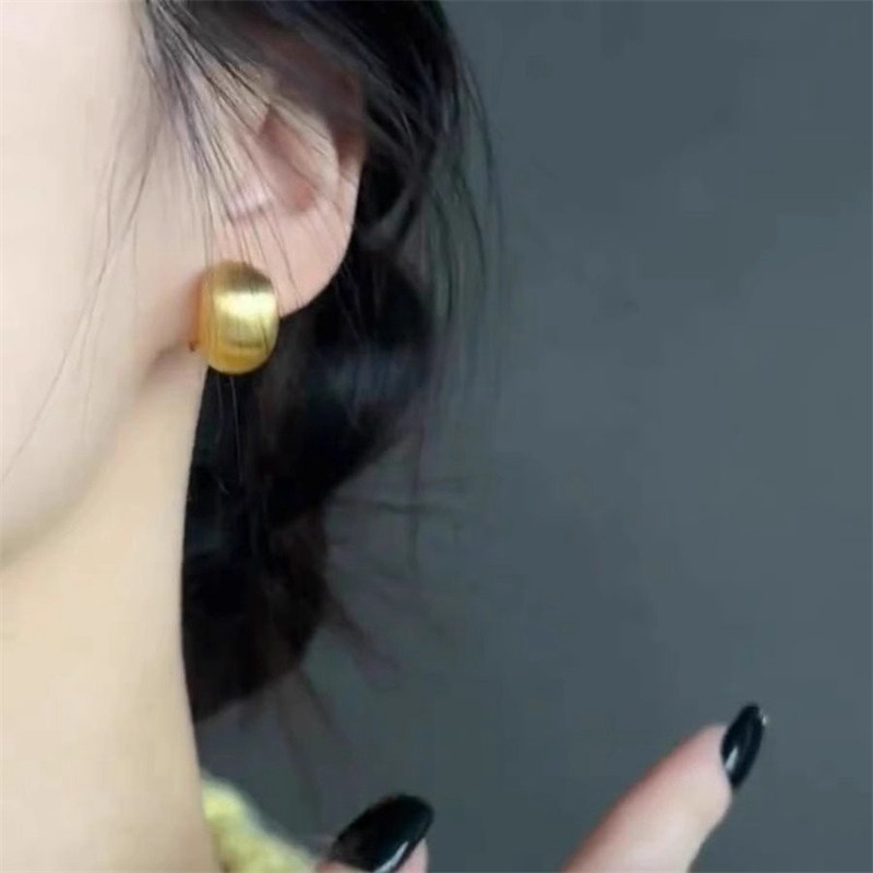 高级感小众拉丝哑光弧形耳钉女轻奢秋冬耳环气质独特925银针耳饰