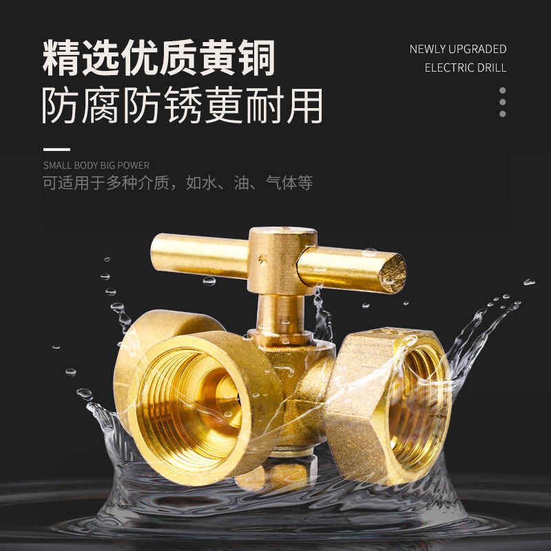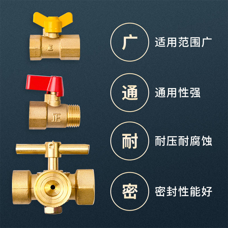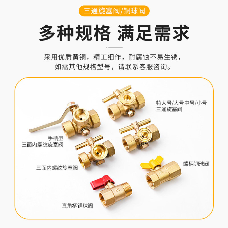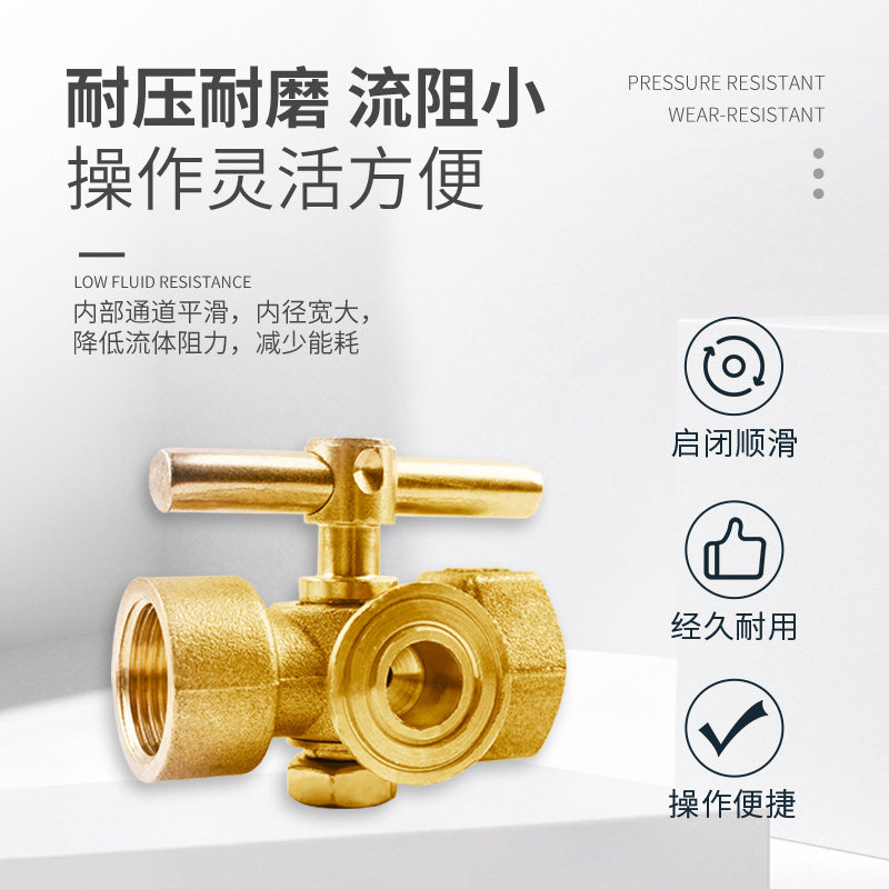 三通旋塞阀加厚黄铜压力表4分阀门内外丝蝶柄直角开关铜球阀手柄