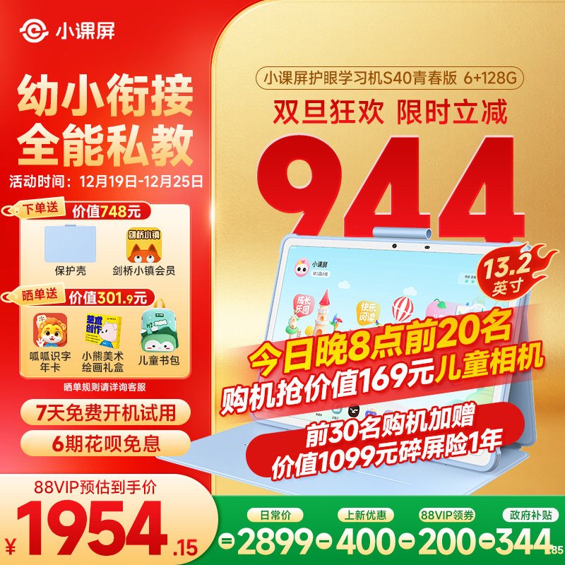 【新品上市】京东方BOE小课屏S40类纸护眼屏13.2英寸AI幼儿启蒙学生平板儿童学习机小学早教机