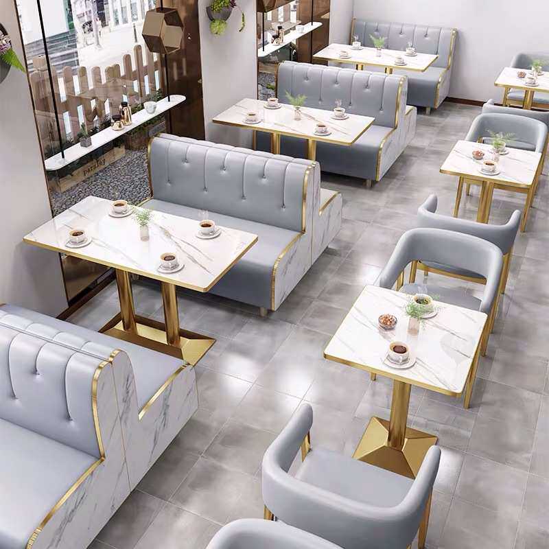 西餐厅新中式餐饮火锅店奶茶店桌椅靠墙组合双人实木卡座沙发
