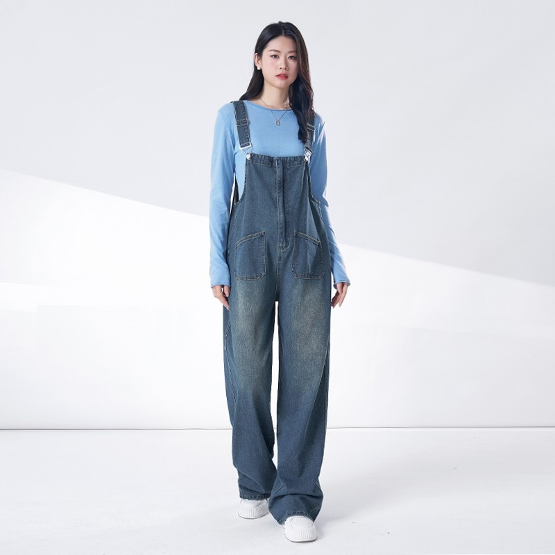 孕妇牛仔背带裤秋冬外穿2025新款不勒肚子休闲直筒长裤孕期阔腿裤