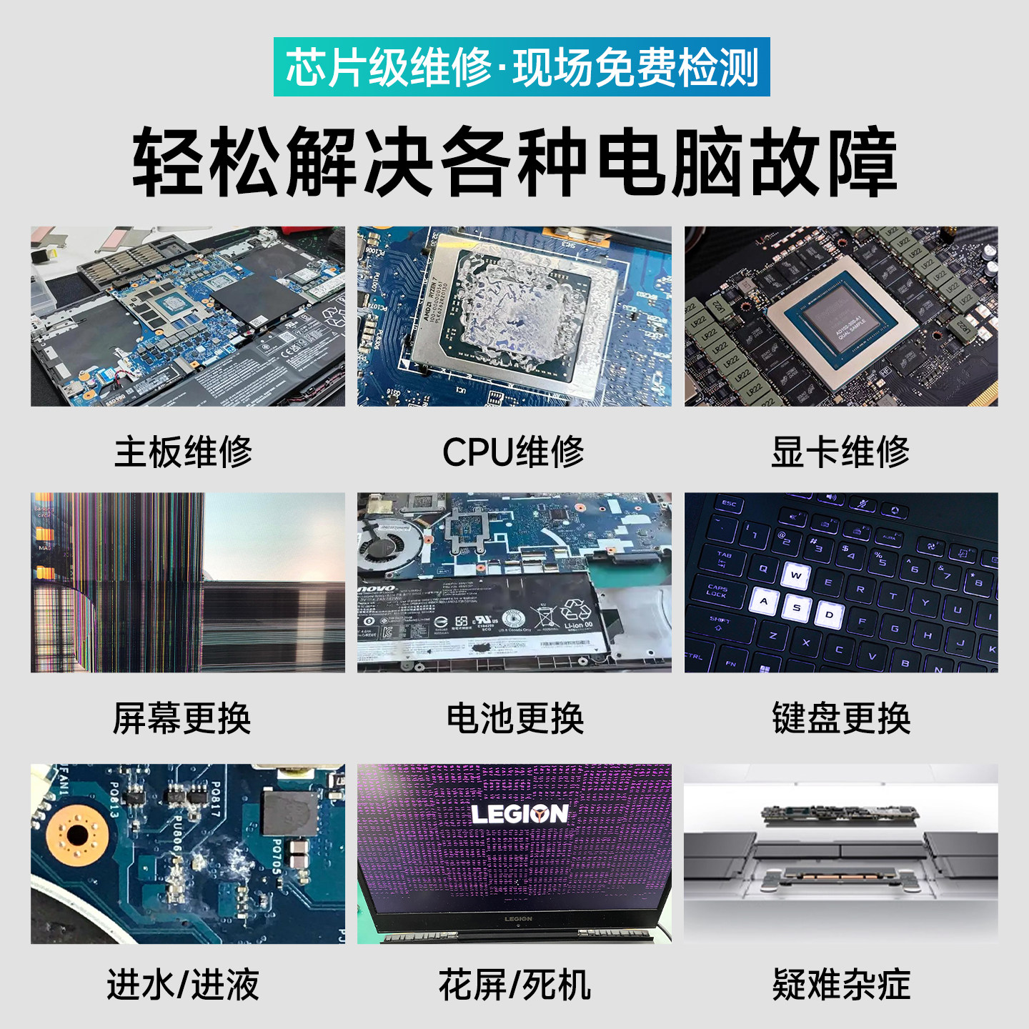 联想笔记本电脑Thinkpad拯救者R9000P不开机Y7000小新蓝/花屏维修