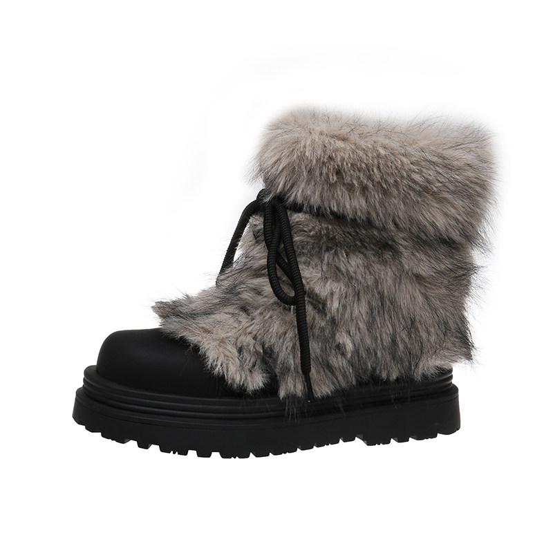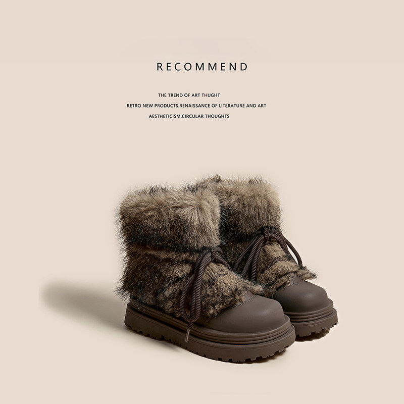 miu家厚底雪地靴女冬季真皮短靴羊毛侧拉链增高厚底加绒毛毛棉鞋