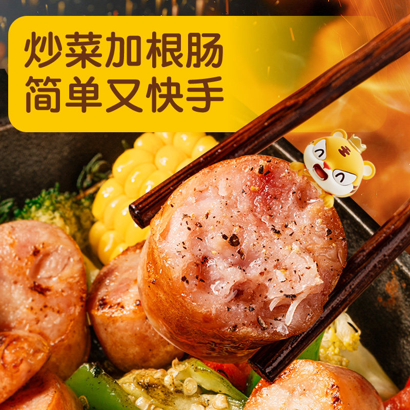 皇家小虎火山石烤肠纯烤肉肠香肠热狗地道肠黑椒脆皮空气炸锅食材