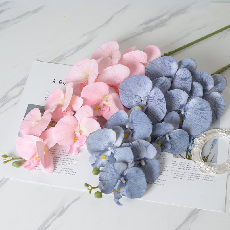 仿真绢布手感9头蝴蝶兰仿真花兰花 婚庆家居装饰假花人造盆景批发