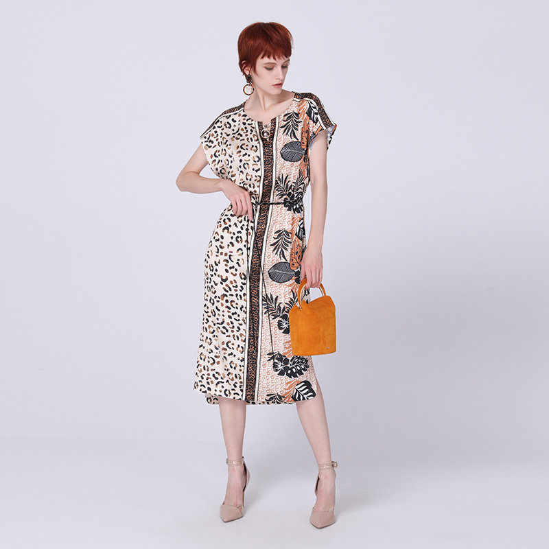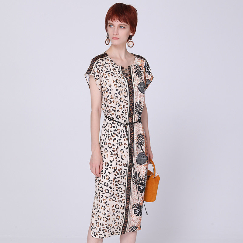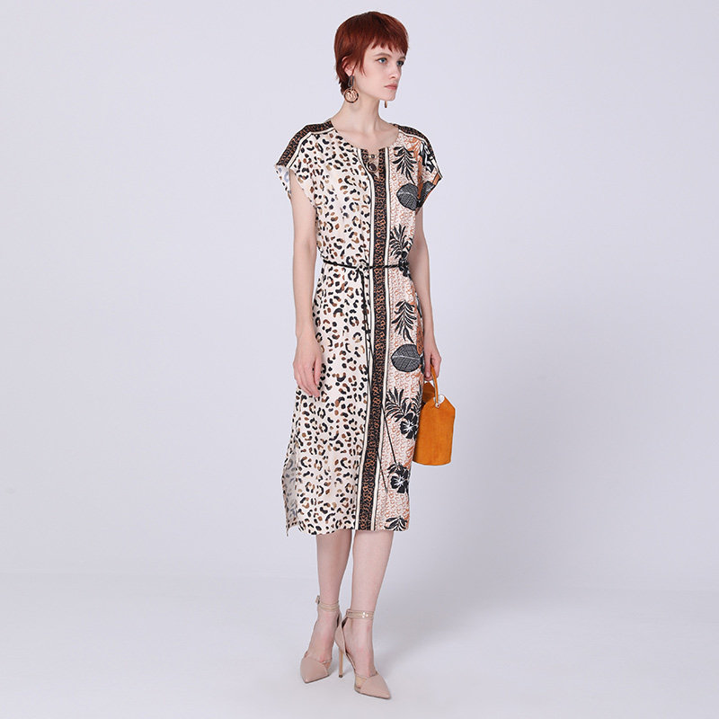 专柜正品马天奴女装春夏新品豹纹印花连衣裙收腰度假短袖收腰裙子