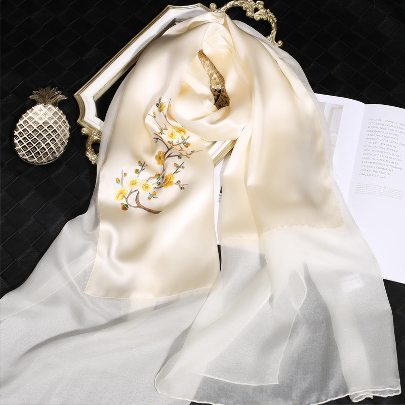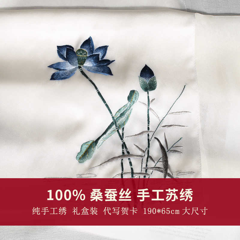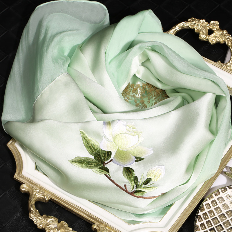真丝围巾女夏季时尚款苏绣披肩外搭母亲节送妈妈刺绣桑蚕丝丝巾