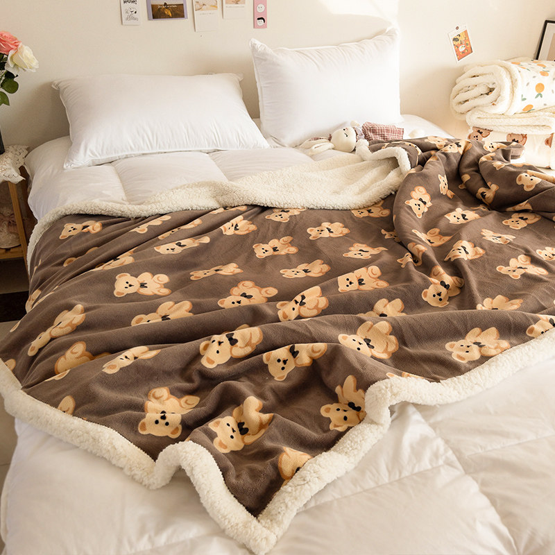 儿童羊羔绒毛毯双层加厚午睡沙发毯子幼儿园小学生法兰珊瑚绒盖毯