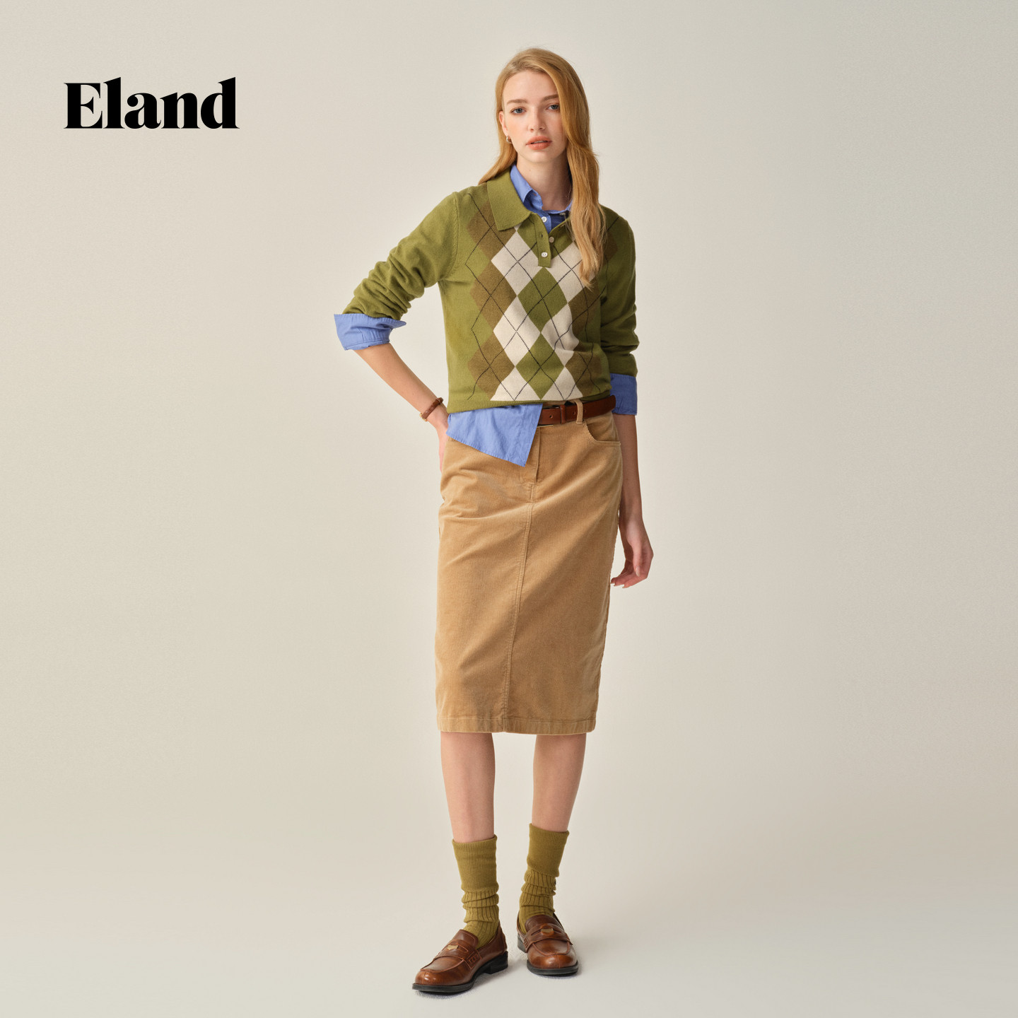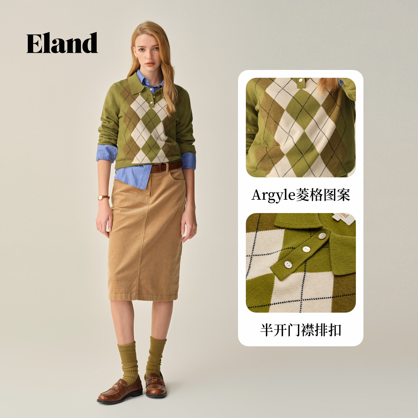 Eland衣恋毛衣女时尚菱格长袖套头针织衫2025冬季新款