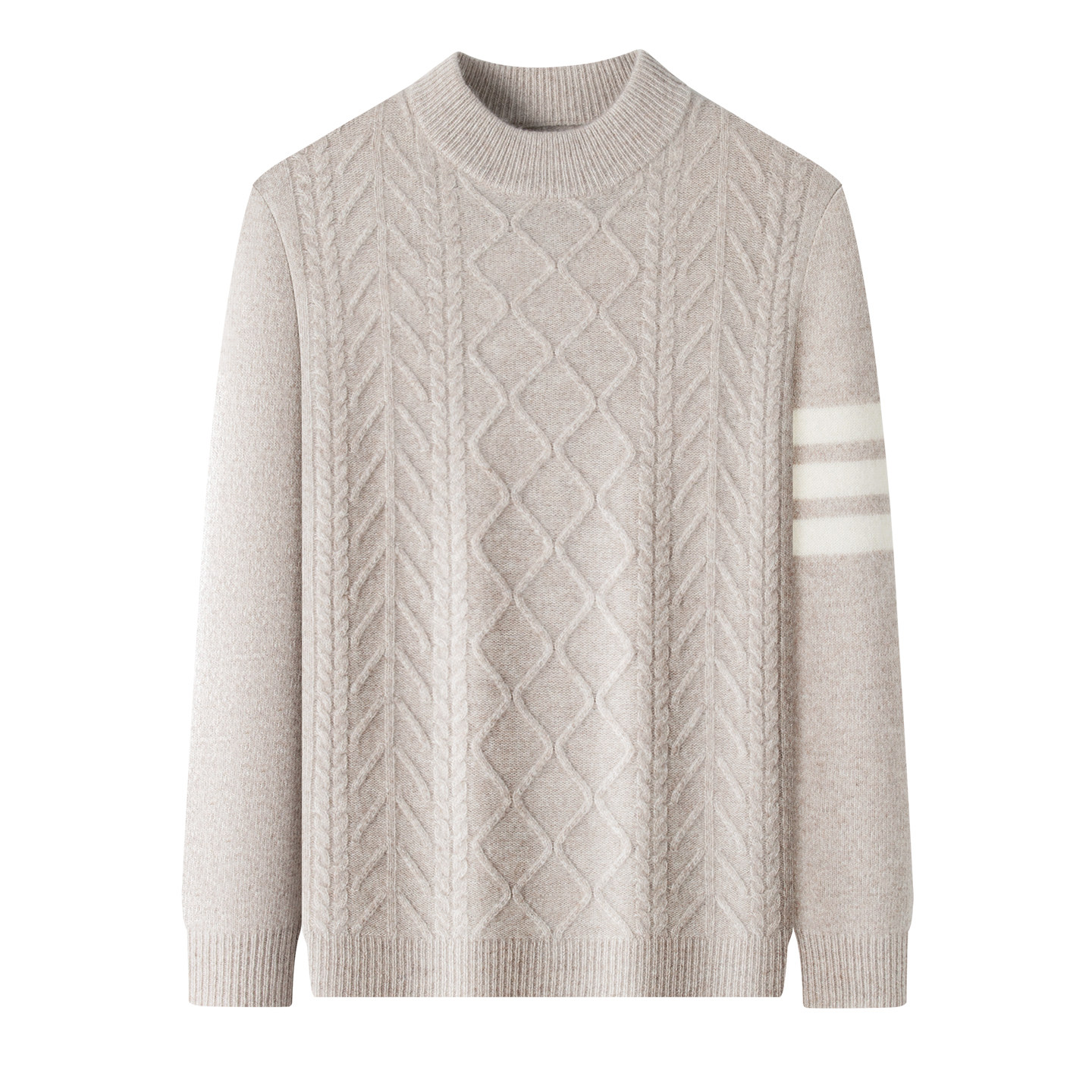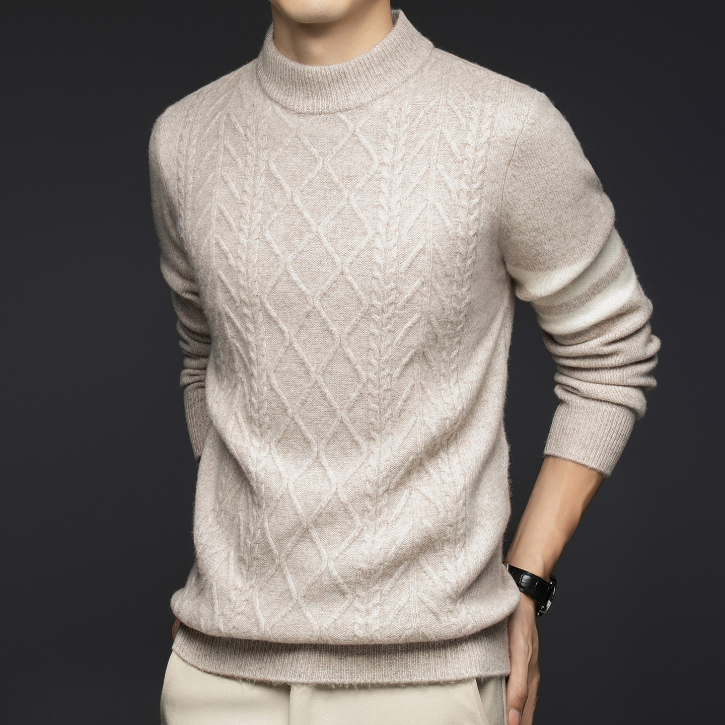 鄂尔多斯市半高领100%纯羊毛衫男休闲中厚保暖毛衣针织打底羊绒衫