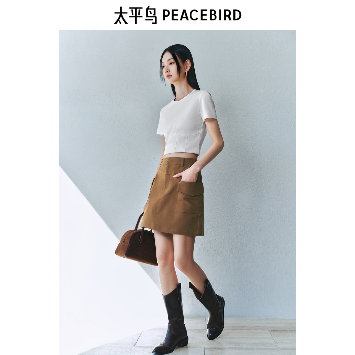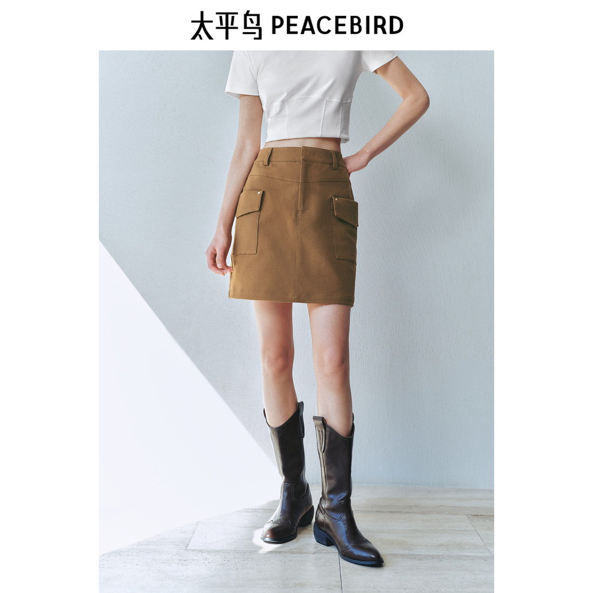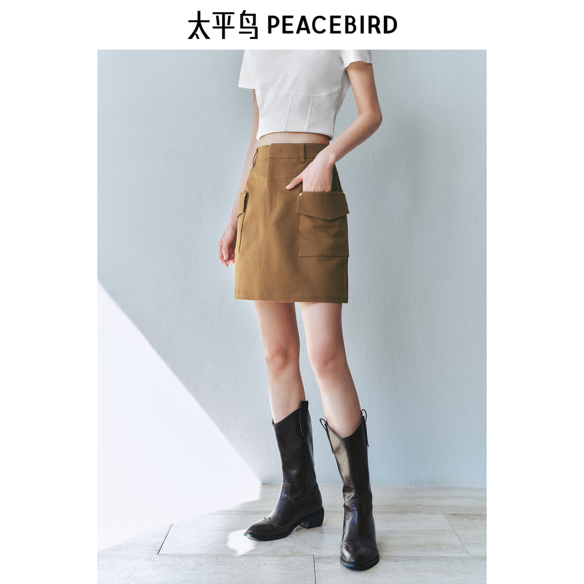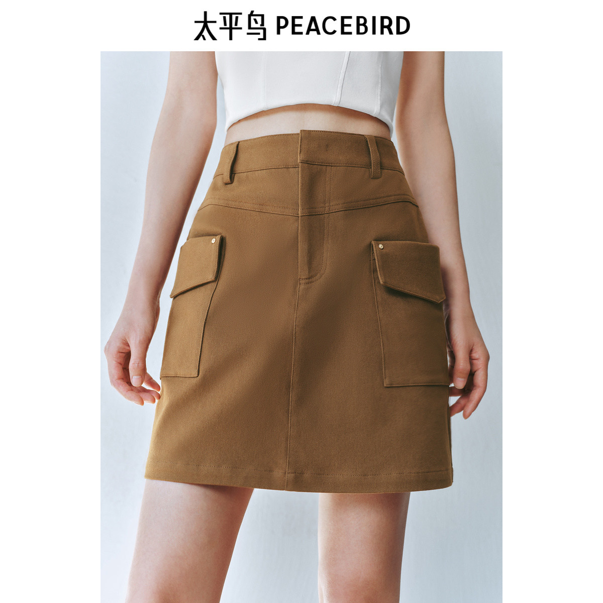 【断码秒杀】太平鸟工装A字短裙显瘦折胯斜纹高腰半身裙简约潮流