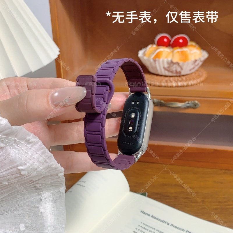 适用小米9/10手环表带8手表带新款磁吸硅胶智能运动nfc版代陶瓷系列替换带男女生高级感夏季配件透明红色黑色