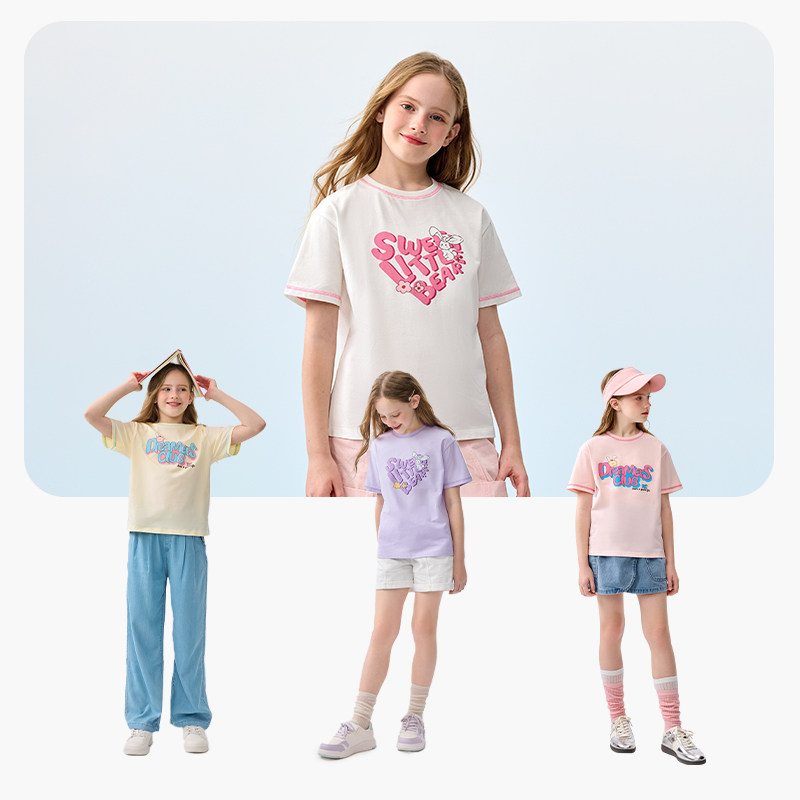 巴拉巴拉童装儿童短袖t恤女童2025新款春夏装大童速干甜美学院潮