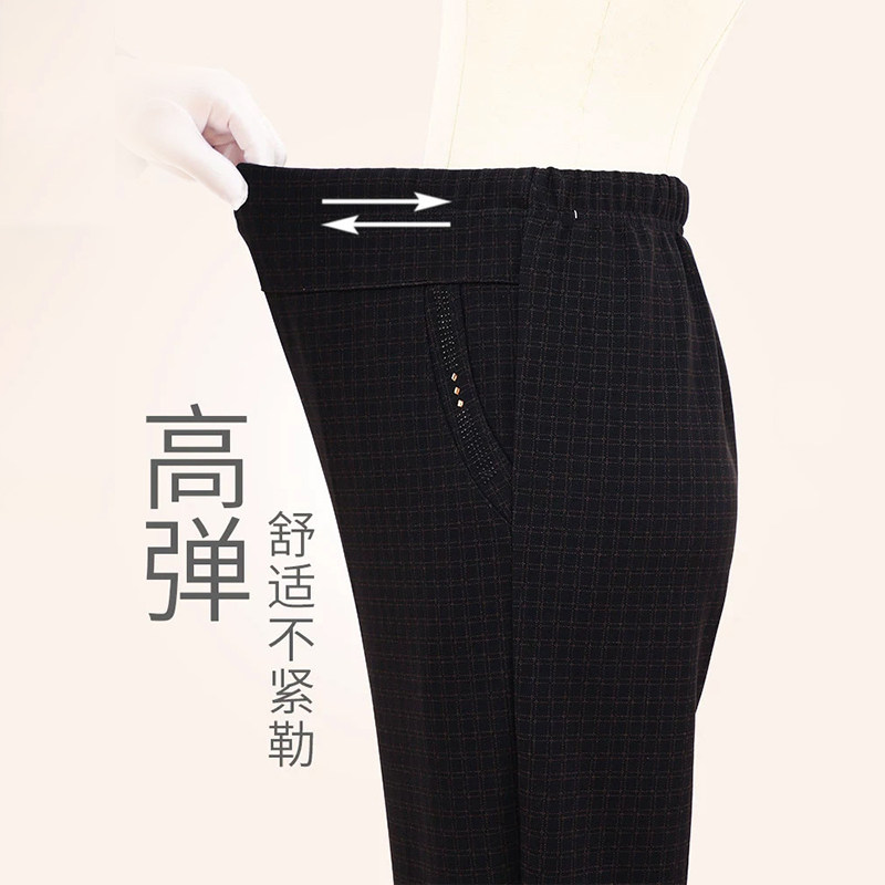 妈妈裤子春秋款松紧高腰弹力中老年女裤宽松大码直筒奶奶加绒长裤