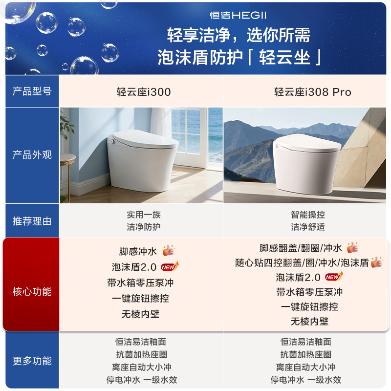 【26年新品】恒洁轻智能马桶坐便器脚感翻盖泡沫盾家用i3系列