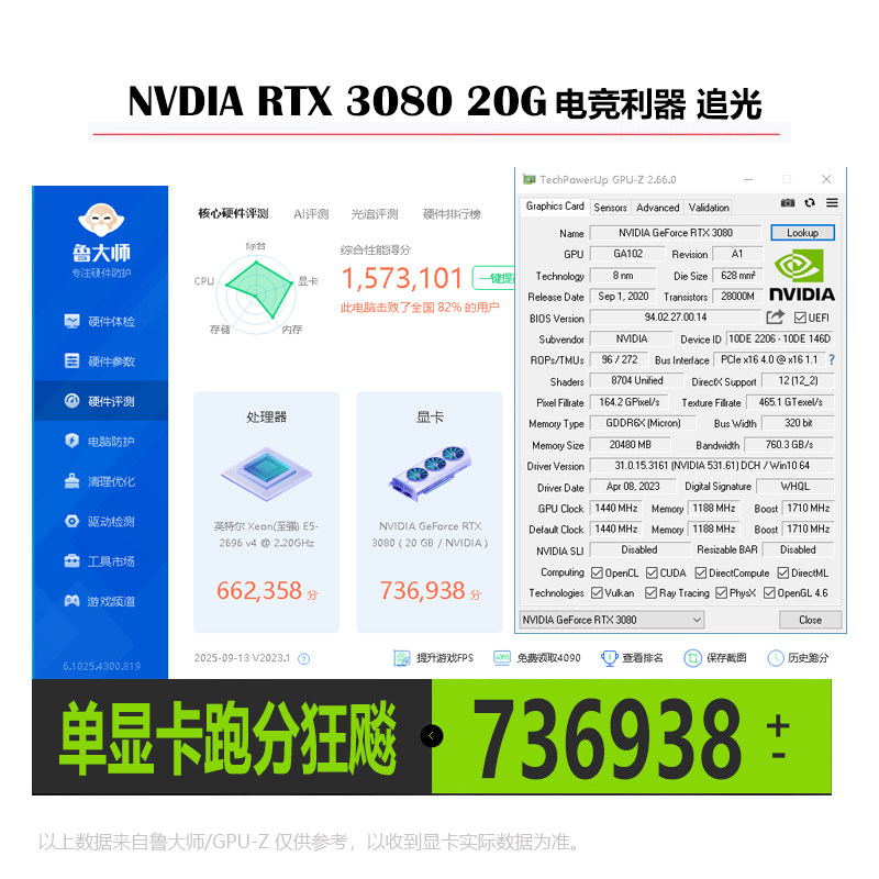 RTX3080 20G游戏显卡绘图3D渲染建模跑图 深度学习模型训练AI计算