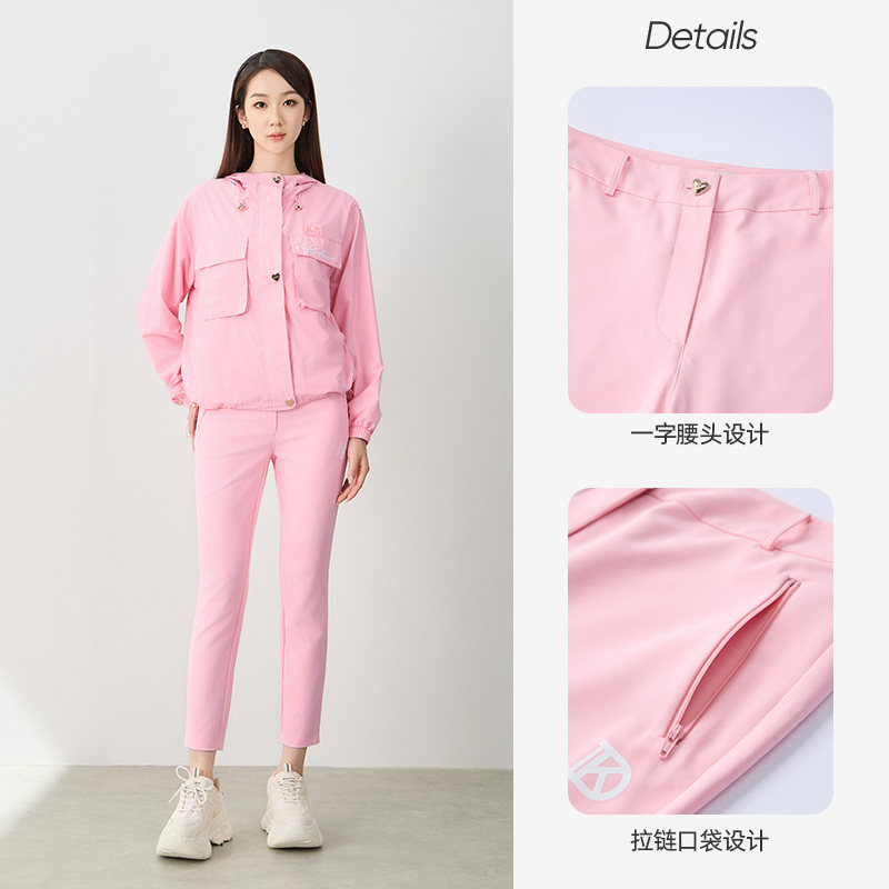 kodice秋冬新品女装粉色修身小脚休闲裤运动裤子长裤印花百搭时尚