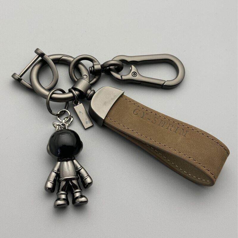 太空人钥匙扣金属挂件男汽车钥匙炼钥匙圈个性创意高档皮绳钥匙炼