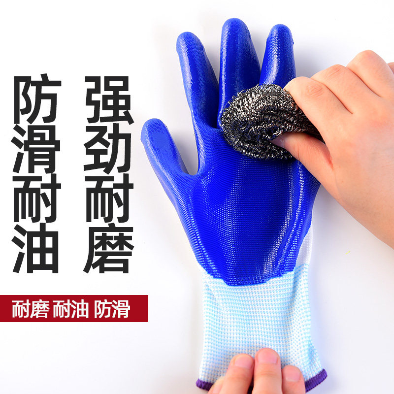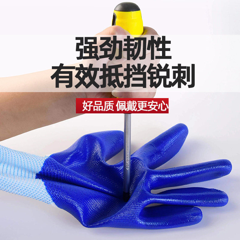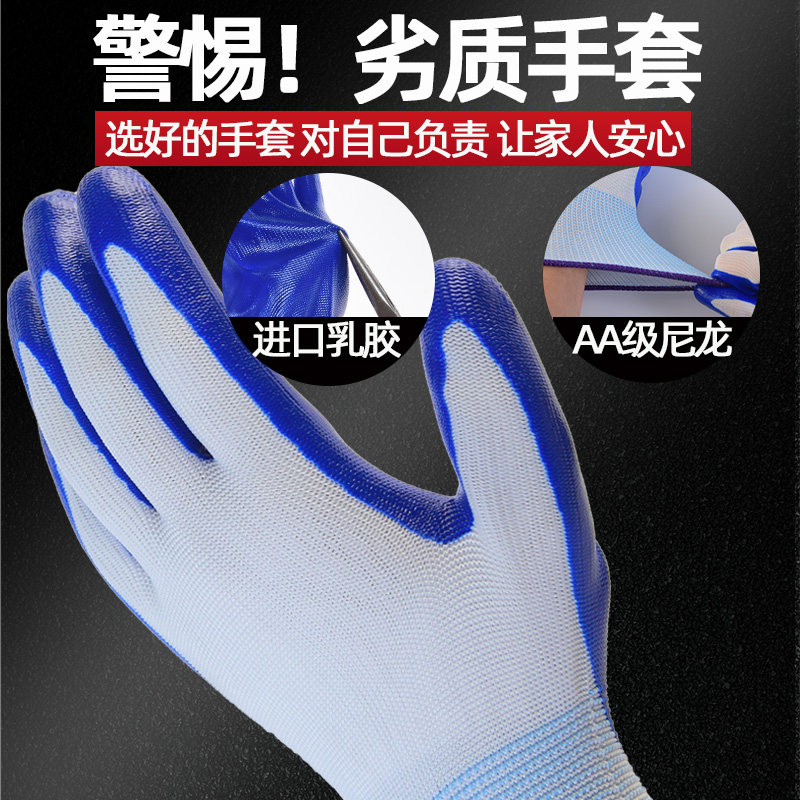 正品丁腈耐用劳保手套耐磨乳胶防滑防水建筑工地透气工地工作尼龙