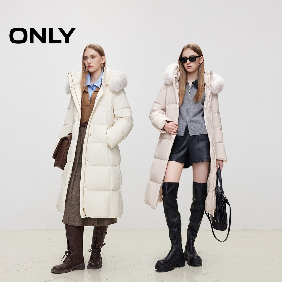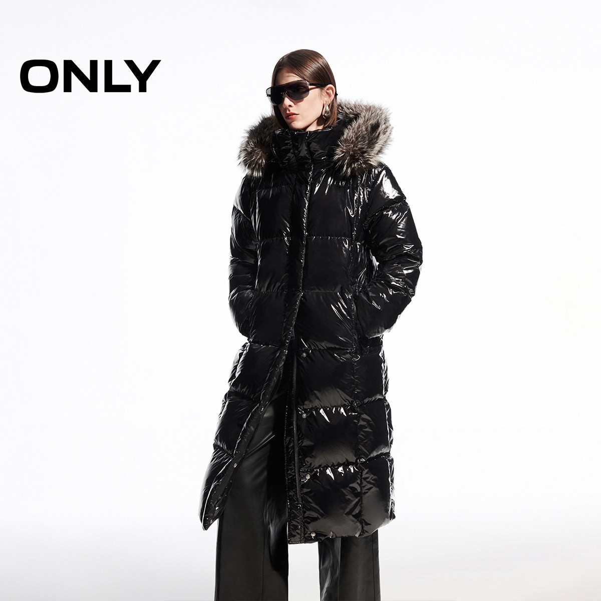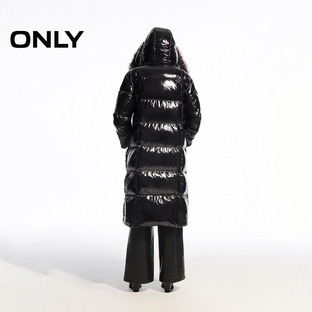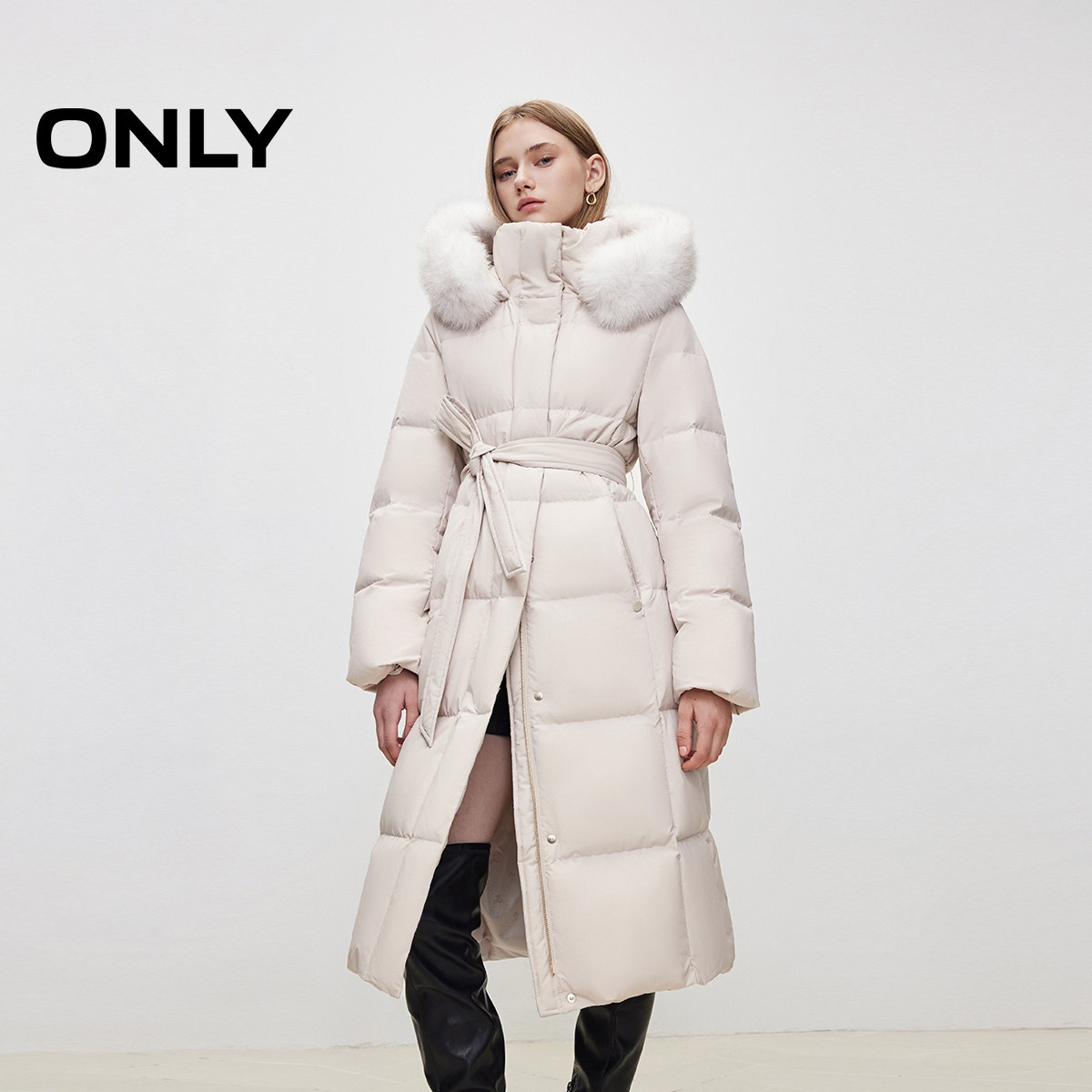 【90鹅绒服】ONLY奥莱冬季保暖连帽大毛领长款羽绒服