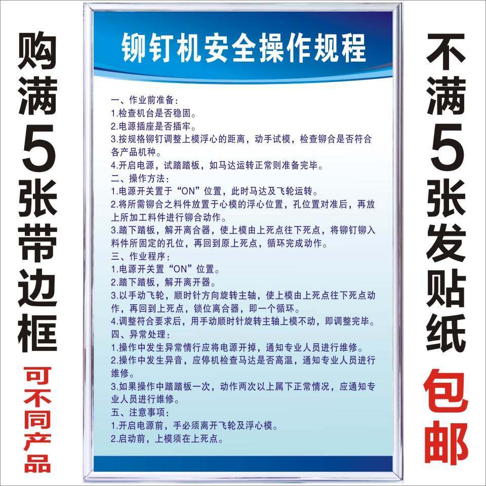 铆钉机安全操作规程工厂公司规章岗位KT板车间企业标识志牌墙贴纸
