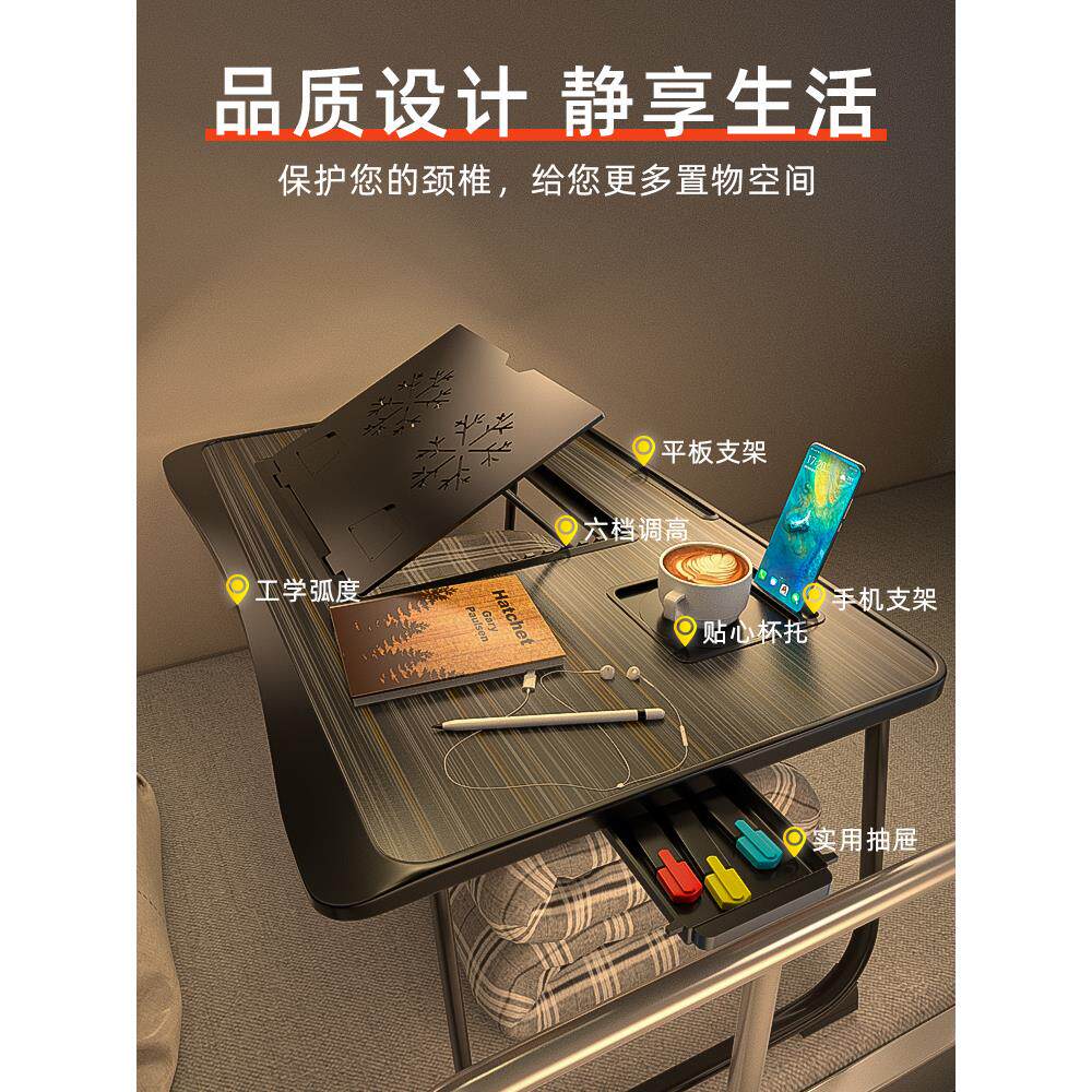 可升降折叠床上小桌子简约宿舍学生写字床上书桌学习调节高度支架家用卧室坐地飘窗懒人笔记本电脑办公小桌板