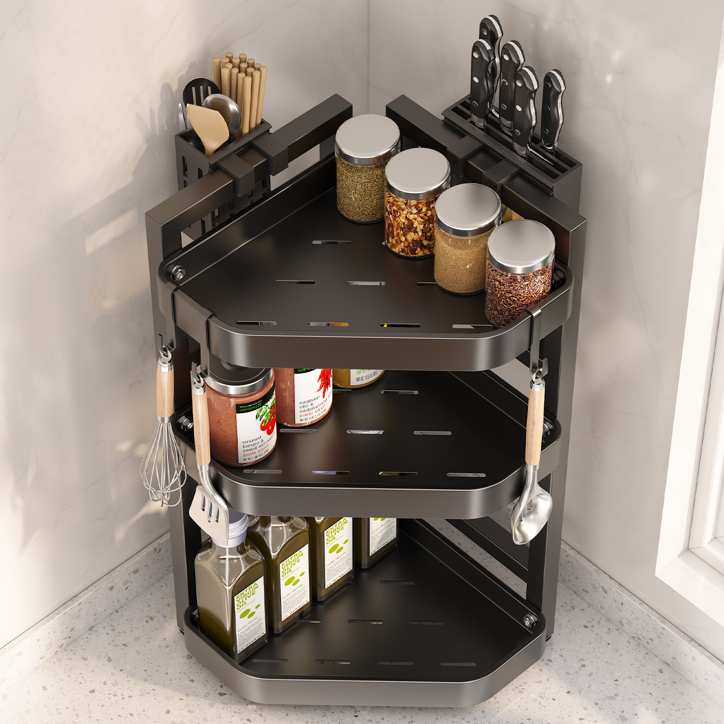 厨房置物架台面墙角收纳架多功能三角架调料架转角分层沥水可调节