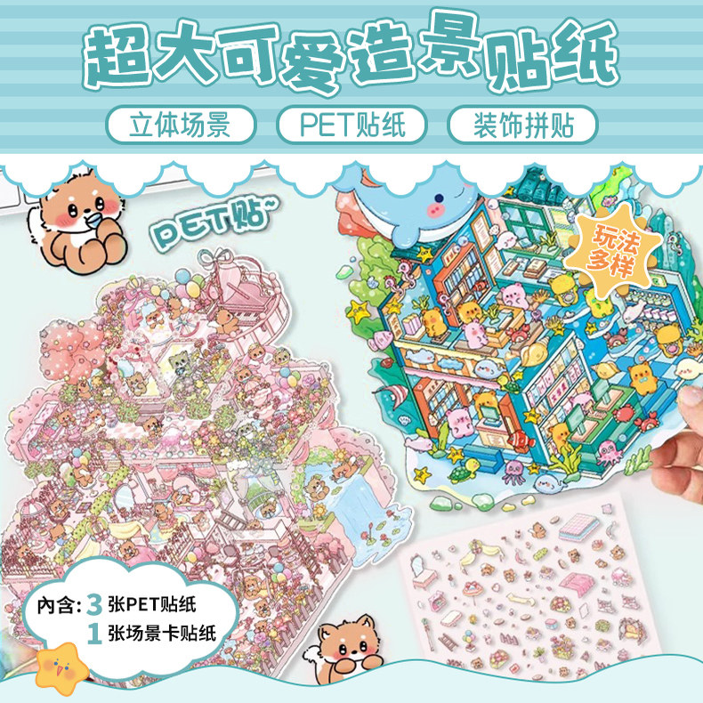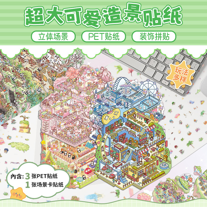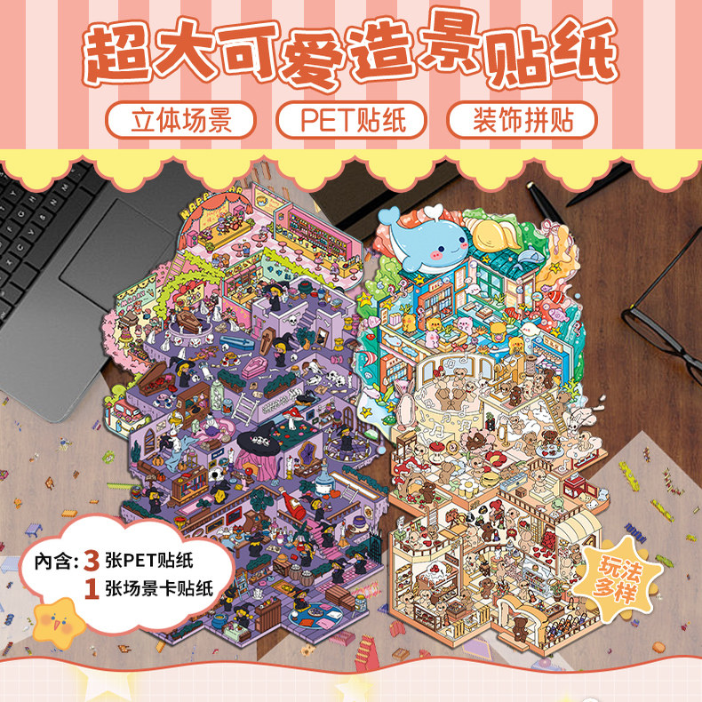 25年新款大号3D造景贴纸解压玩具女孩儿童微缩场景贴纸造景贴纸立体小屋diy贴画