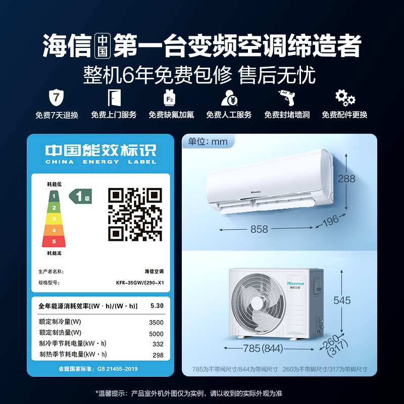 海信科龙静省电大1.5匹1匹家用空调一级能效挂机以旧换新补贴官方